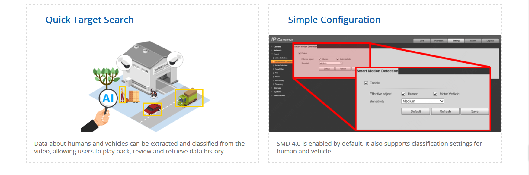 In 2018, Dahua Technology innovated the Smart Motion Detection (SMD) Technology to differentiate human and vehicular shapes within a scene and send alarms to secure your business and family.
