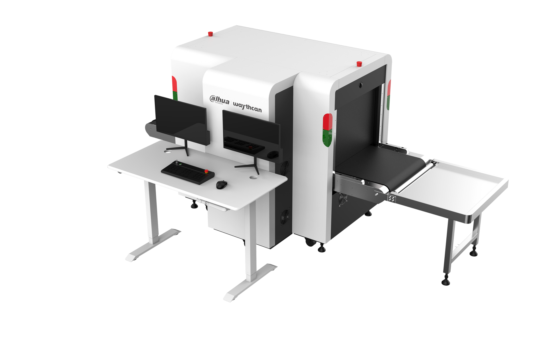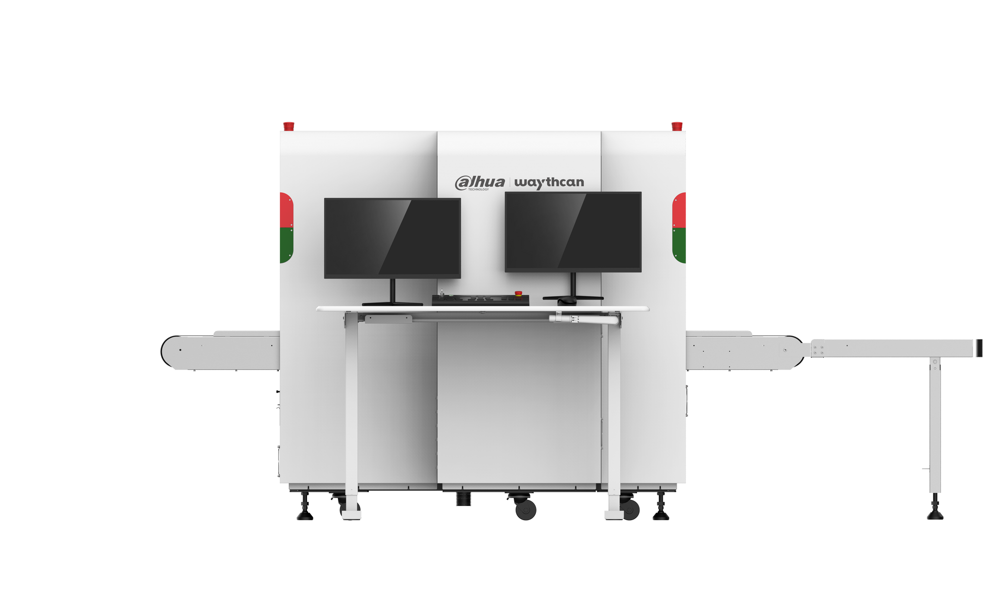 > 2 built-in cameras that respectively monitor the entry and exit of baggage and the package inspection process.