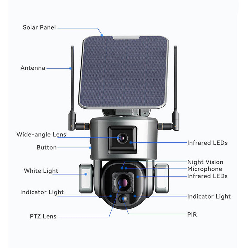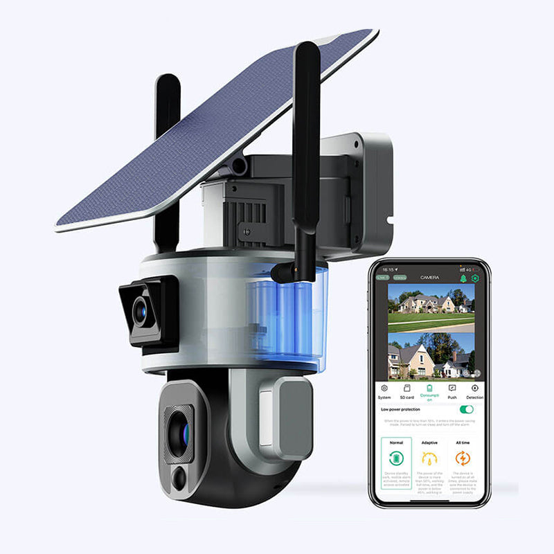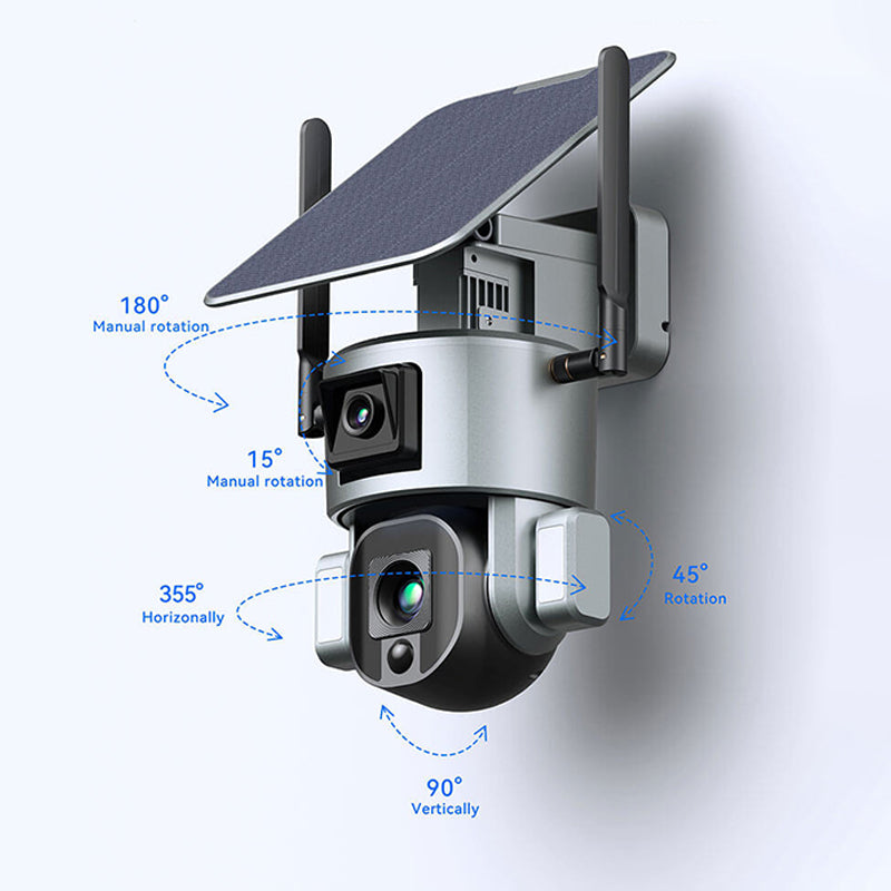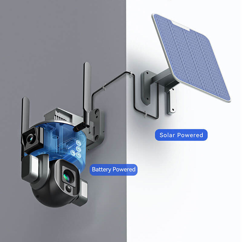 Solar Battery 4MP+4MP Dual-lens Network PTZ Camera with WIFI/4G